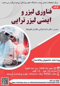 کارگاه فناوری لیزر و ایمنی لیزر تراپی توسط مرکز تحقیقات ایمنی بیمار سه شنبه 22مهر ماه 1404 برگزار می شود